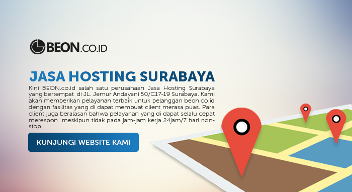 Tidak bisa dipungkiri Kota Surabaya yang menjadi Kota terbesar kedua di Indonesia memiliki banyak potensi, termasuk bisnis. Salah satu yang sedang berkembang saat ini adalah berbagai bisnis yang sudah mulai Go Online. Berbisnis online memang membutuhkan banyak kebutuhan, salah satunya yaitu sebuah hosting untuk kepentingan website bisnis kita. Saat ini di kota Surabaya sudah tidak perlu lagi bingung mencari Jasa Hosting Surabaya. Karena Beon.co.id yang notabennya merupakan sebuah perusahaan hosting yang terletak di Kota Pahlawan ini.