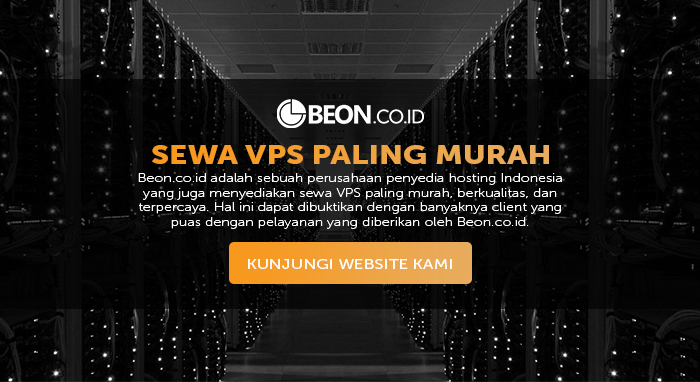 sewa VPS paling murah, berkualitas, dan terpercaya. Hal ini dapat dibuktikan dengan banyaknya client yang puas dengan pelayanan yang diberikan oleh Beon.co.id. Client beralasan bahwa pelayanan yang didapat selalu cepat direspon meskipun tidak pada jam-jam kerja. Kepercayaan client terus bertambah seiring dengan semakin profesional layanan yang diberikan oleh tim kami.